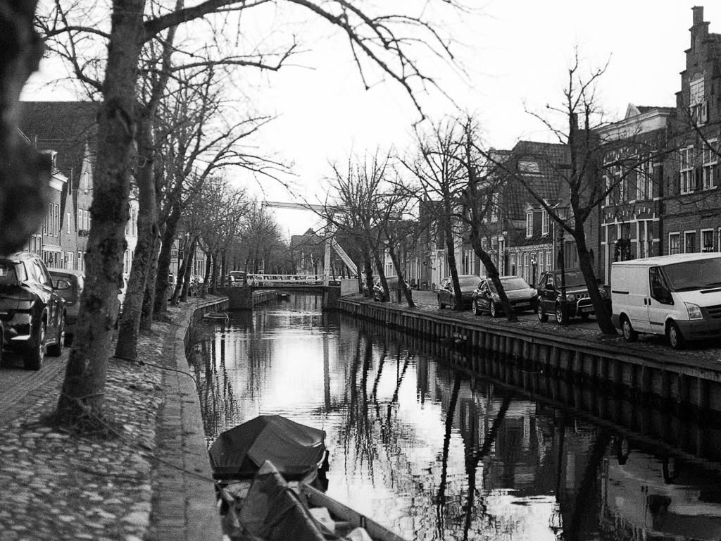 Zum fotografieren hatte ich meine Domke eingepackt, also die Tasche, in der immer die Leica und die kleine Mamiya (eine 645) drin sind. In Amsterdam hatte ich dann die Leica mit, aber der Film ist noch nicht voll – aber am letzten Tag bin ich nochmal durch Edam und habe in der 645 einen alten Ilford FP4 verschossen. Entwickelt hatte ich in als Standentwicklung in Rodinal 1:100.