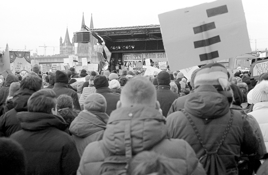 Die Bilder snd zwar schwarz-weiß, aber die Stimmung war genauso bunt, wie Köln es eben auch selber ist – und nicht braun wie Scheiße, die aus dem Abfluß der Geschichte wieder hochgespült wird.